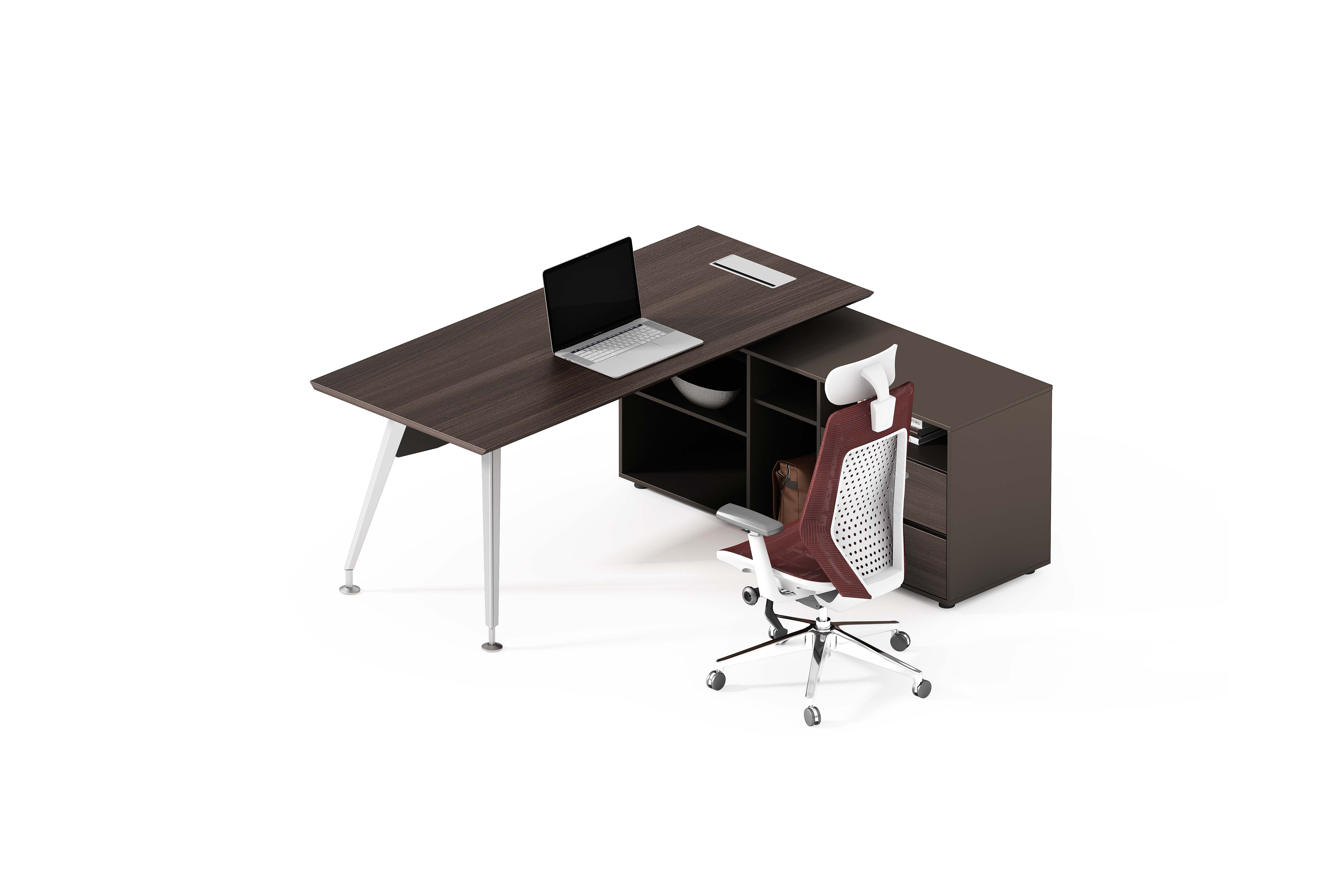 3、結(jié)構(gòu):用回形鋼腳搭配加厚臺(tái)面板,流暢的線條塑造出簡(jiǎn)單利落,穩(wěn)重大氣的視覺(jué)外觀;臺(tái)面采用復(fù)合加厚工藝厚度40mm;附柜側(cè)板和背板復(fù)合厚度40mm加厚板,采用45度拼接結(jié)構(gòu),拉米諾連接方式,外觀精致,工藝高端;附柜配置了兩個(gè)翻轉(zhuǎn)線蓋板,內(nèi)含86插座安裝孔位附柜配置2個(gè)抽屜,1個(gè)移門,線路收納等存儲(chǔ)空間分左右做法,滿足客戶不同的空間需求