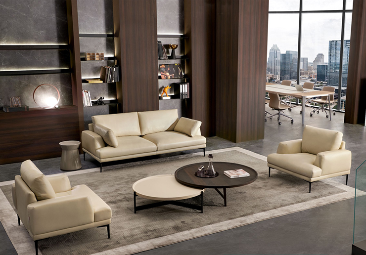 使用進(jìn)口一級牛皮,抗張強(qiáng)度≥15N/mm2,撕裂強(qiáng)度≥35N/mm2 。皮面平整、柔軟、舒適、透氣性好,防污、防蛀、無退色,無瑕疵,無蝕味、無甲醛及二甲苯等異味,且任何部位無皮癬;內(nèi)部采用優(yōu)質(zhì)高彈性阻燃泡棉底座密度高達(dá)45kg/m3以上,其它部位不小于35Kg/立方米,拉伸強(qiáng)度不小于85Kpa;框架主體為東北硬雜木。實(shí)木龍骨沙發(fā)框架、實(shí)木沙發(fā)腳等所用木材含水率要求≤12%。五金配件均為進(jìn)口名牌,各種配件、連接件安裝嚴(yán)密、平整、端正、牢固,結(jié)合處無崩茬或松動,無少件、漏釘、透釘現(xiàn)象。